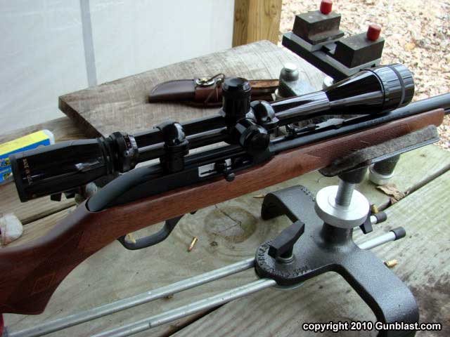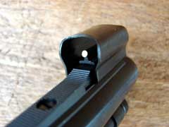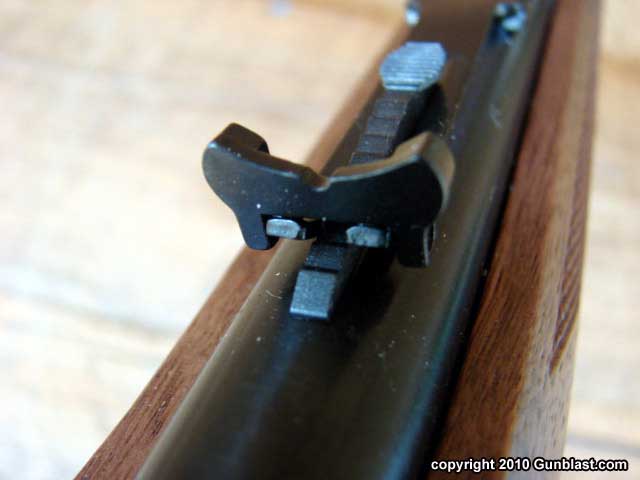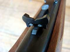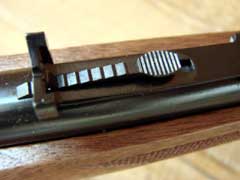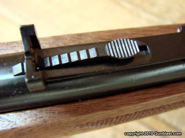 a step-adjustable rear. Very good sights for a rimfire rifle,