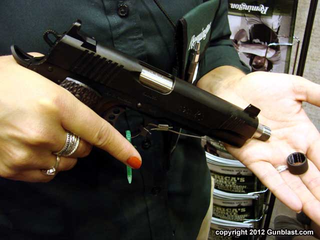 Remington's new R1 Enhanced 1911 pistol with threaded barrel. |