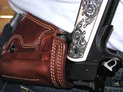 handgun, and double leather reinforced at the wear and