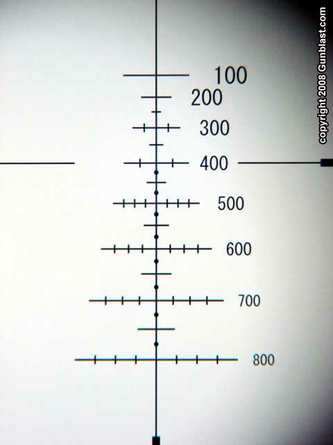 crosshairs at 100 yard increments from 100 to 800 yards, with
