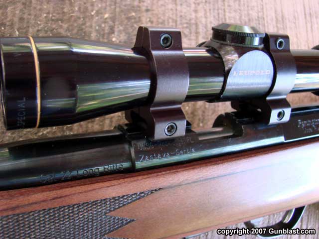 2 to 7 power compact rimfire scope in Leupold Rifleman rings.