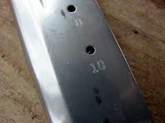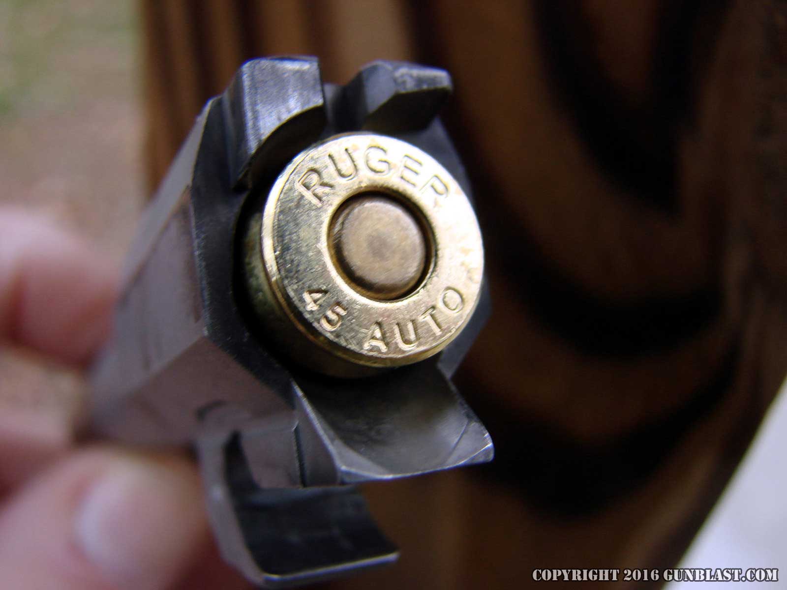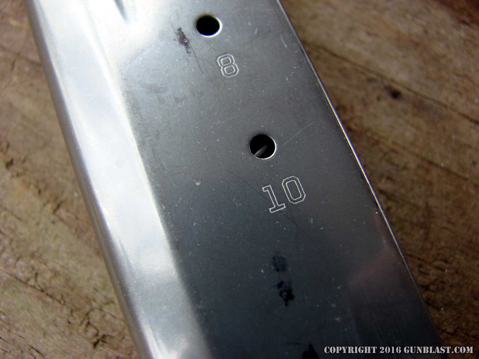 ten 45 ACP cartridges. The 45 version is only slightly longer,