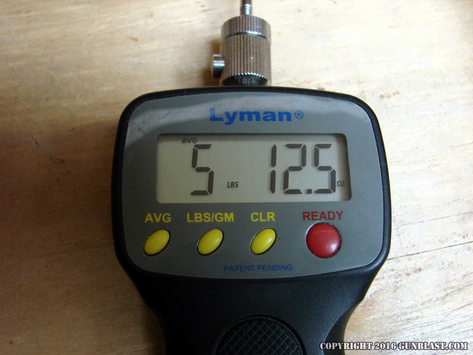 both my Lyman and Timney trigger scales, but feels lighter. I