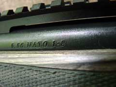 barrel is rifled one turn in eight inches (1/8) to stabilize
