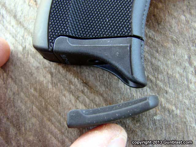 Slide lock (top), magazine release (bottom).