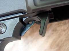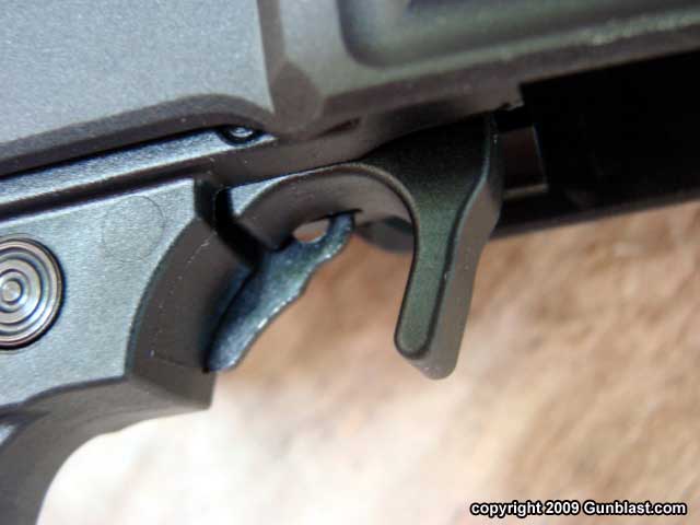 comfortable AR-style pistol grip. Between the pistol grip and