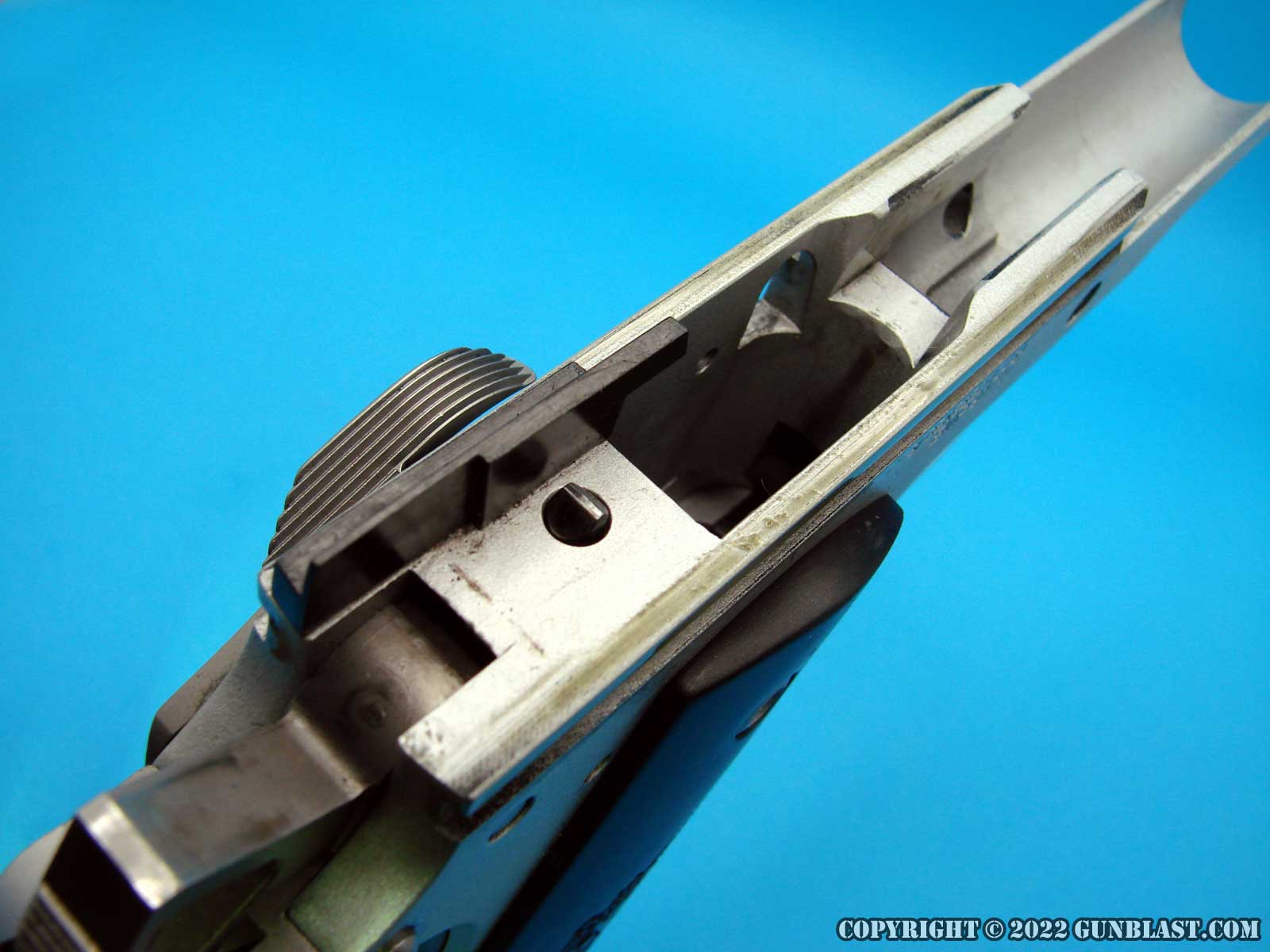stainless steel frame and forged, blued carbon-steel side, the