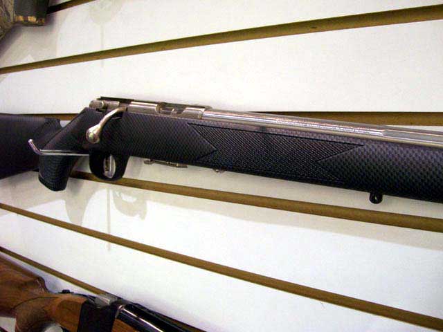 stainless rifle with fluted barrel and carbon-dipped stock. |