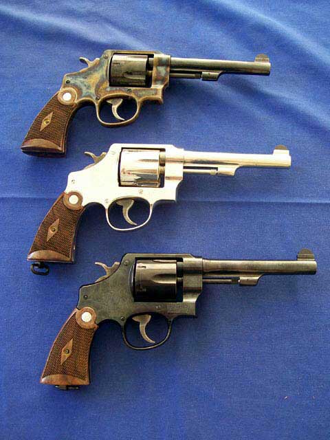 case-hardened finish (top), nickel (center) or high-polish blue (bottom). |