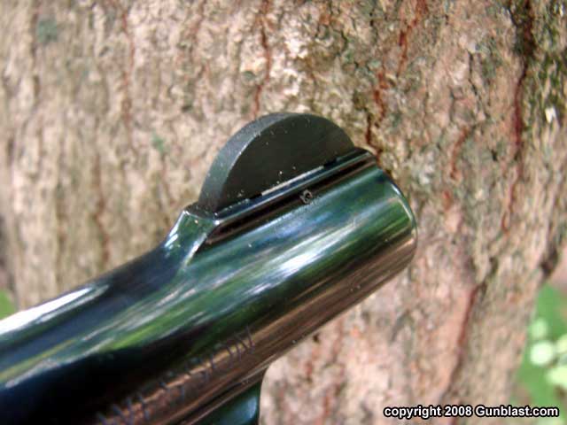 pinned to integral barrel ramp. Rear sight (bottom) is fixed