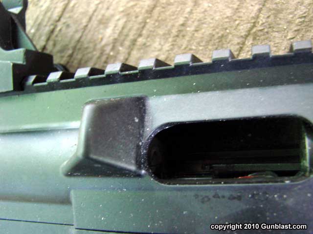 the carbine, has a long section of Picatinny rail atop the
