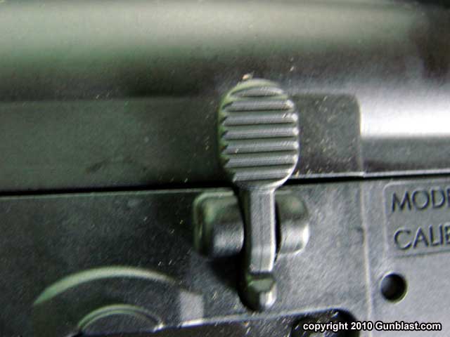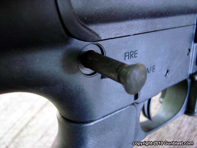 right-handed thumb safety lever, and an AR-15 bolt release. The
