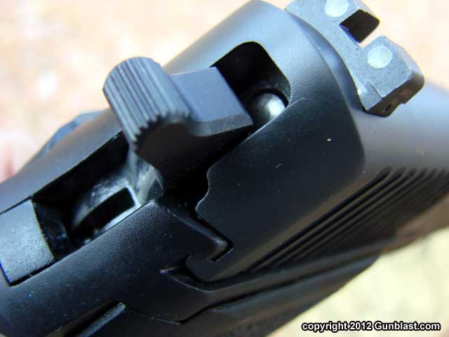 The slide locks open on an empty magazine, and the slide lock