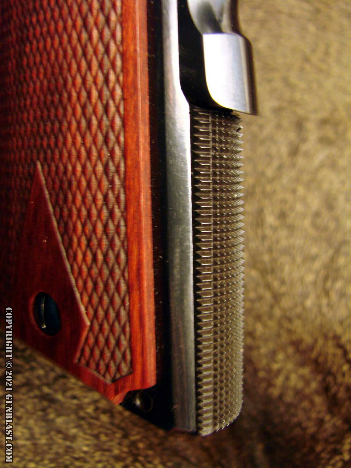 Front of grip (top) and mainspring housing (bottom) are checkered at 25