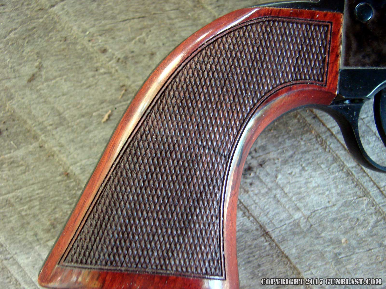 checkered, and feel great in my hand. The front of the cylinder
