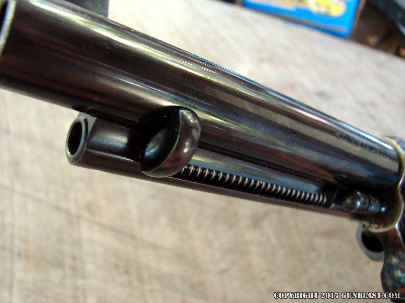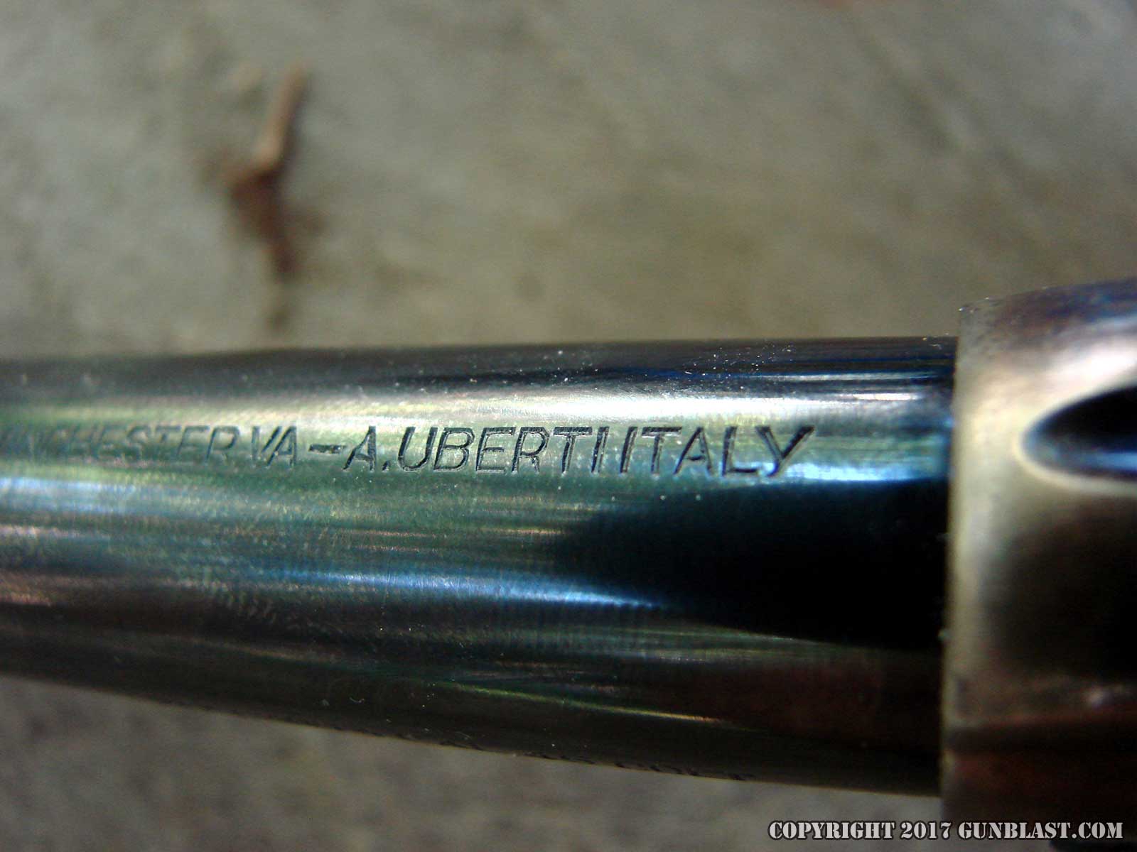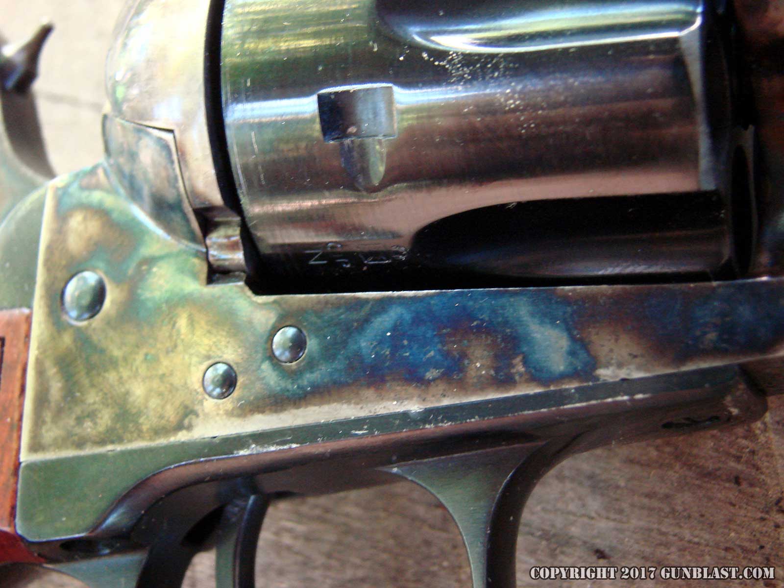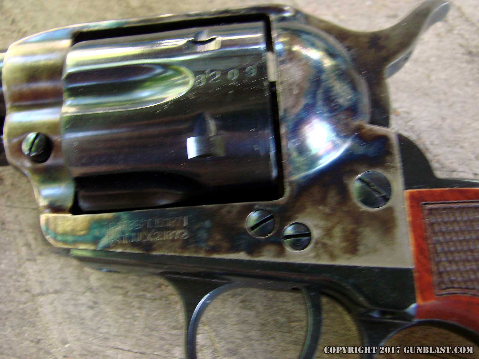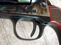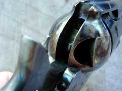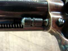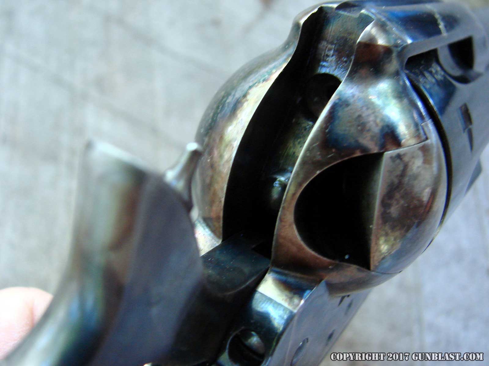 Colt-style lockwork, but has Uberti’s two-step base pin for
