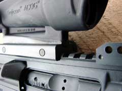 Picatinny rail. With an ACOG on the carry handle, the standard