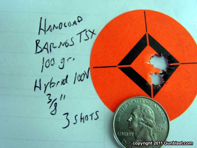 grains of Hodgdon Hybrid 100 V powder and a Federal 210 primer.
