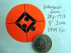 feet from the muzzle of the Vanguard’s barrel. The 80 grain